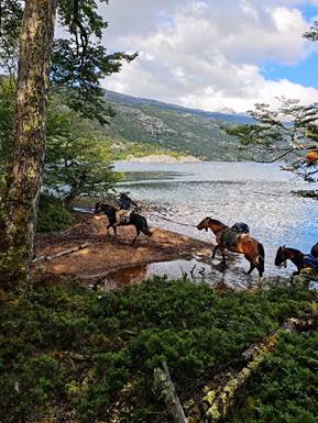 Iniciamos la cabalgata al pie del Glaciar Calluqueo, desde un paraje conocido como Puesto del Libro.