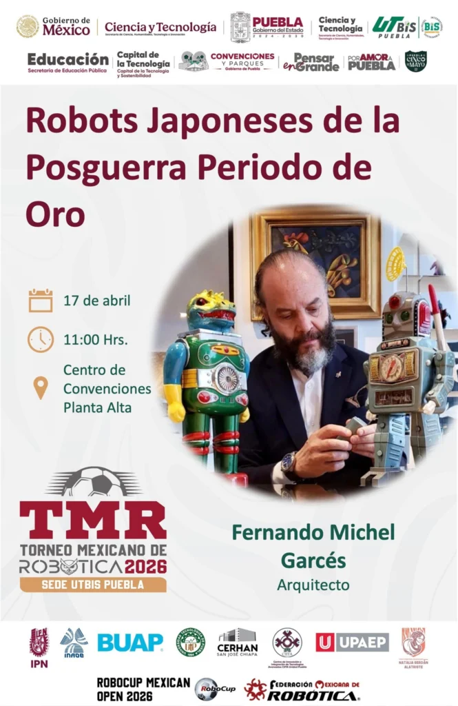 El Arq. Fernando Michel Garcés participará en el Torneo Mexicano de Robótica 2026 con una conferencia sobre la historia de los robots japoneses de la posguerra.
