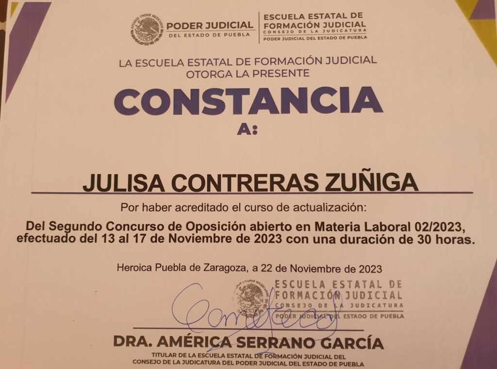 Constancia del segundo concurso de oposición abierto en material laboral 02/2023