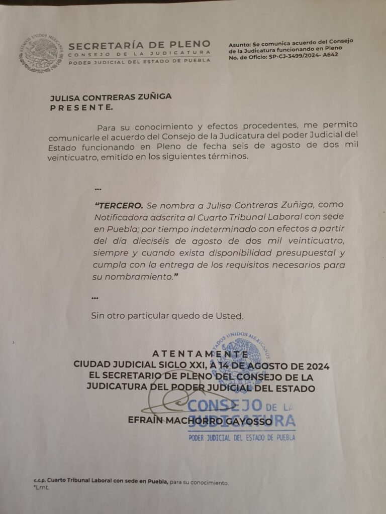 Oficio del Consejo de la Judicatura No. de oficio SP-CJ-3499/2024-A642.