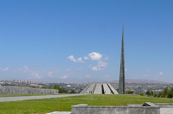 Se integra con el monumento de la llama votiva en memoria de los muertos y el edificio del museo. Los dos forman un todo. Está sobre una colina. Al fondo el Ararat nevado que ahora se ve completo. Desde aquí se contempla una buena parte de la ciudad. El emplazamiento recuerda al de los monasterios. En 1965 se incia la construcción, para conmemorar el 50 aniversario del genocidio. La obra se termina en 1967. El diseño es de los arquitectos Kalashian y Mkrtchian. El museo se añade en 1995, para conmemorar el 80 aniversario de la masacre. El poyecto es de los mismos arquitectos.