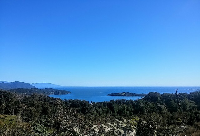 La luz del atardecer ayuda a resaltar los contrastes del verde e incrementa la belleza de estos parajes. Un anuncio carretero nos informa que vamos ahora por la “Ruta originaria”. A las 8 de la noche, con muy buena luz del día todavía, llegamos al pueblo maderero de Cañete, donde advierto una “desarmaduría” (un deshuesadero), pasamos Reputo (no quise investigar sobre su gentilicio), luego Lanalhue, el primer lago de nuestro recorrido y, unos treinta minutos después, Frank anuncia la llegada a nuestro primer destino del viaje al sur: el lago Lleulleu.