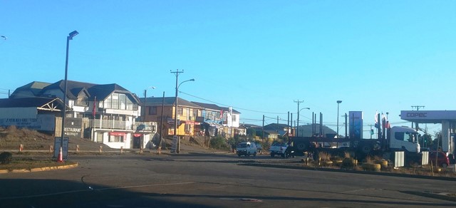 La comuna Los Álamos, a los pies de un gran cerro, es una población de casas bonitas de madera que veremos a lo largo de nuestro recorrido por sur chileno. Por ahora vamos hacia Cañete, en territorio de la Araucanía. Pasamos por Antihuala, el primer poblado netamente mapuche que luce extrañamente vacío a las 7:30 de la tarde (aquí anochece pasadas las nueve), ni un alma en las calles ni frente a sus casas. Huillinco, otro pueblito del camino, nos ofrece de forma más compacta y armónica otra muestra de la arquitectura del sur.